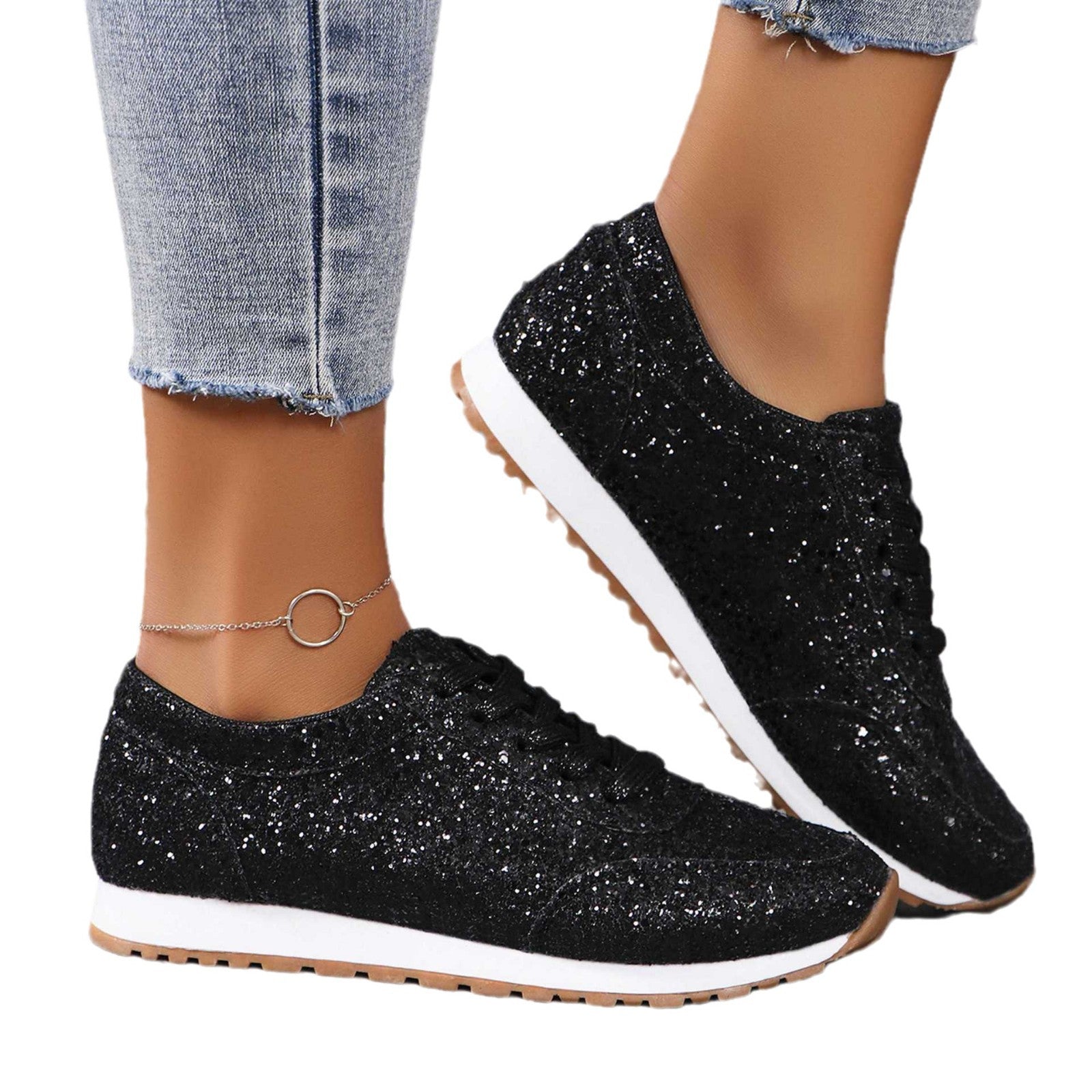 Beautiful Sequin Lace-up Flat Casual Sports Single-layer Shoes Women