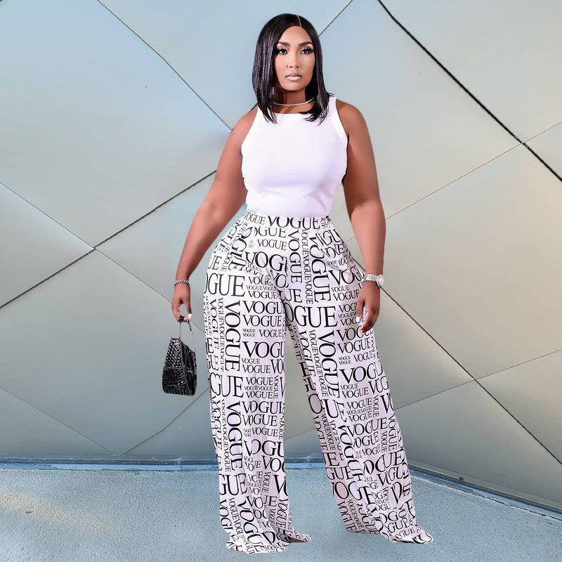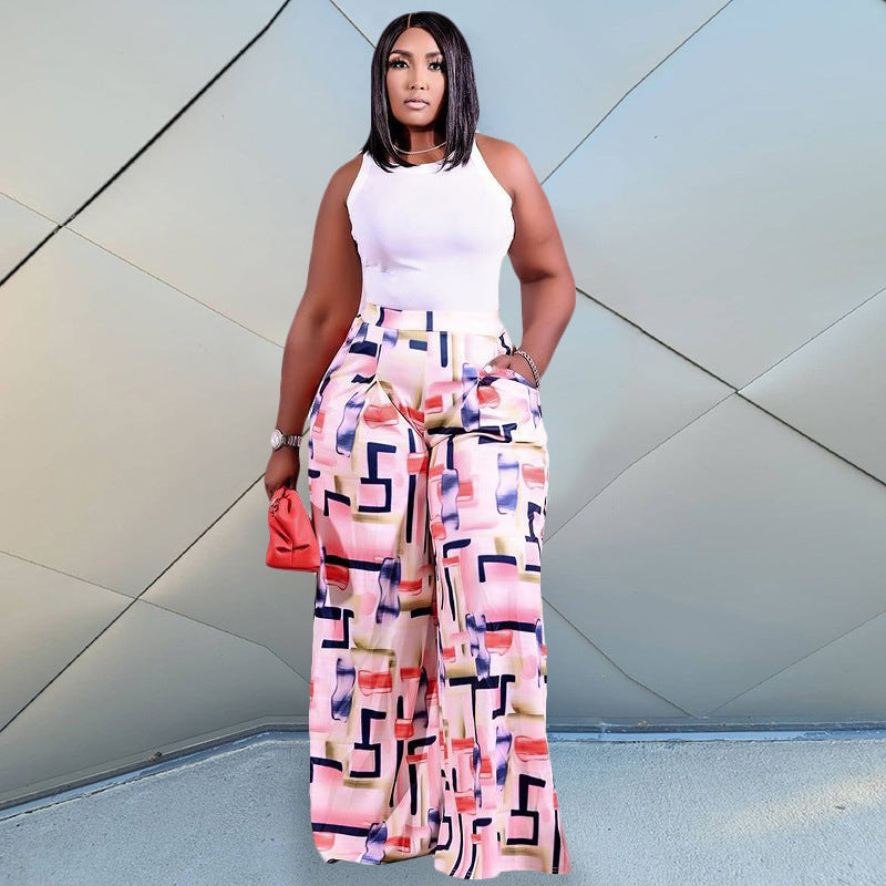 Casual Letters Geometric Flower Print Stretch Waist Wide-leg Pants Women's Trousers