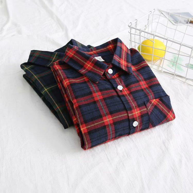 Casual Plaid Single Pocket Lapel Long Sleeve Shirt