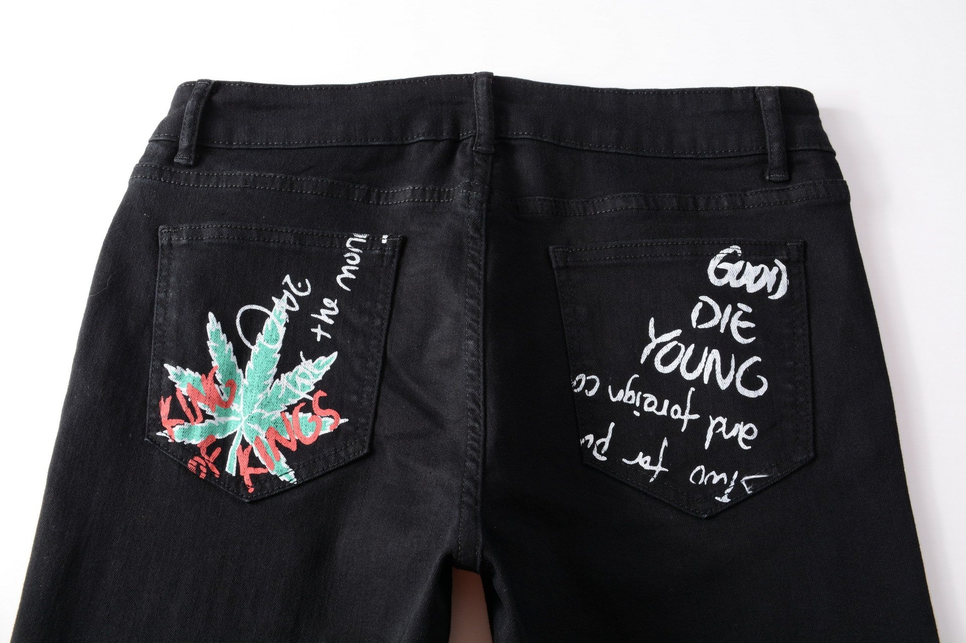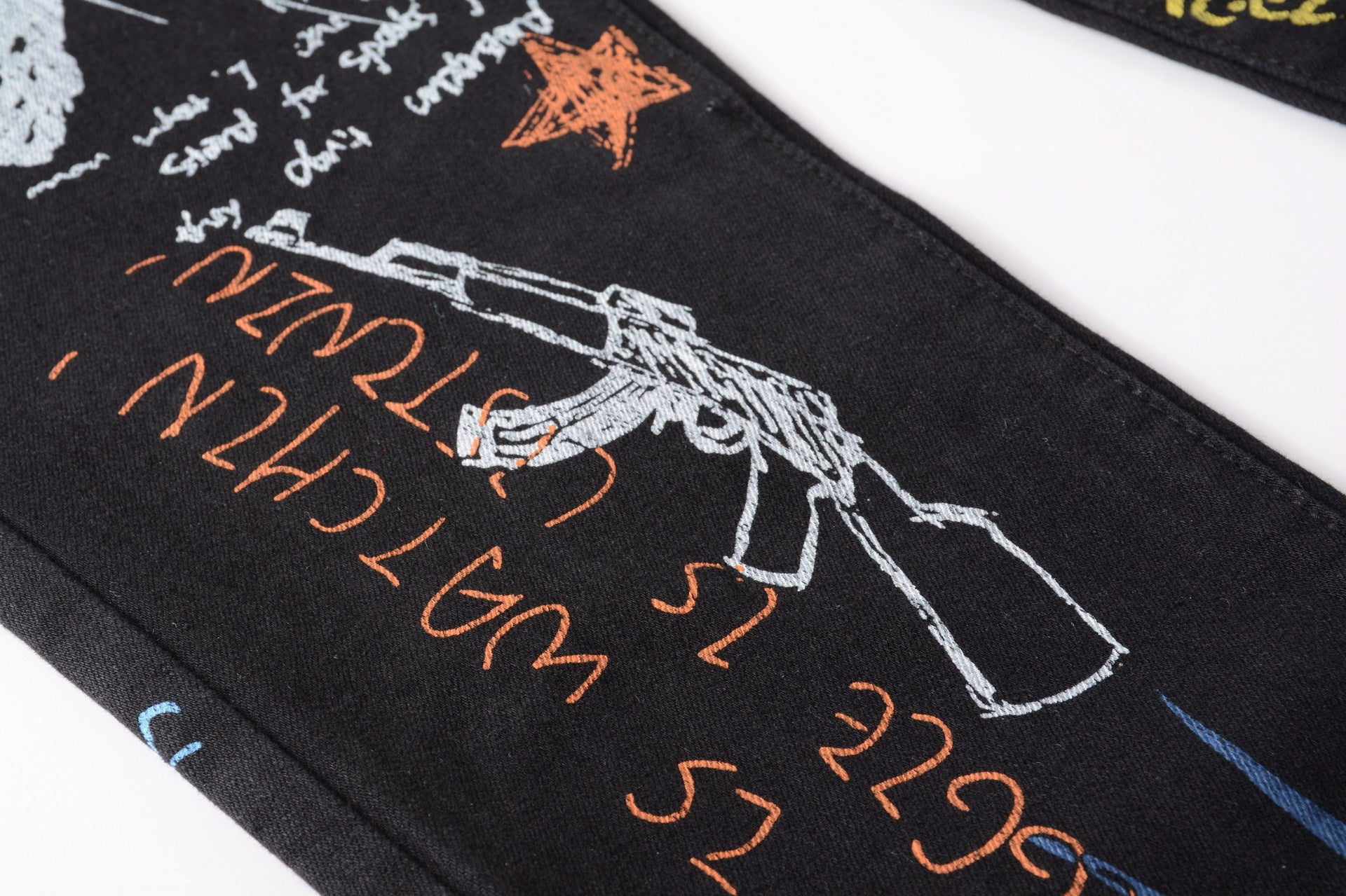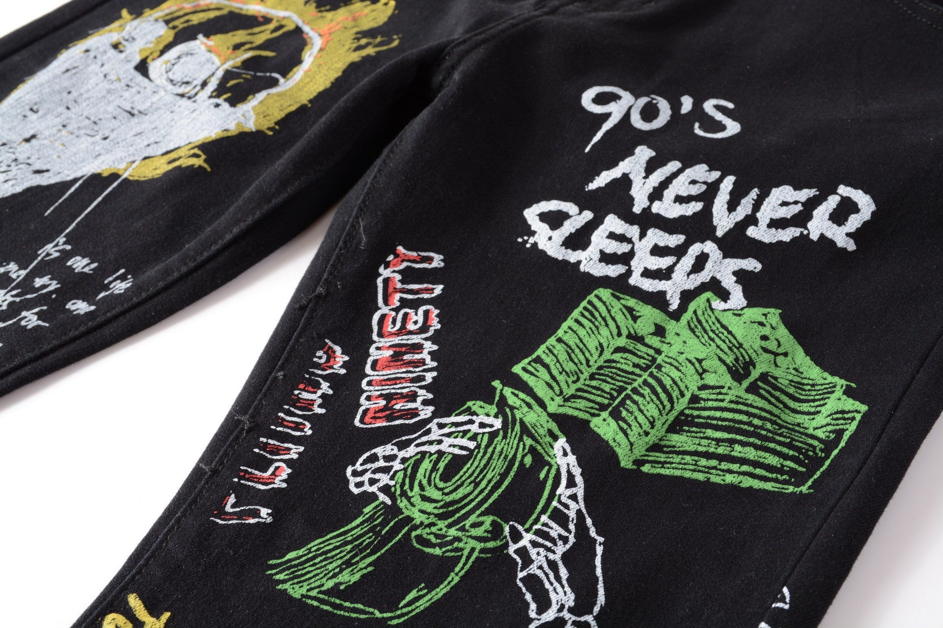 Color Print Black White Trousers Skull Graffiti