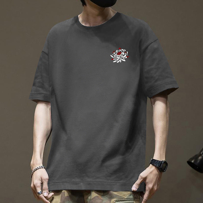 Couleur : manches courtes en pur coton blanc-2454, manches courtes en coton noir-2454, manches courtes en coton kaki-2454, manches courtes en coton bleu 43-2454, manches courtes en coton gris foncé-2454