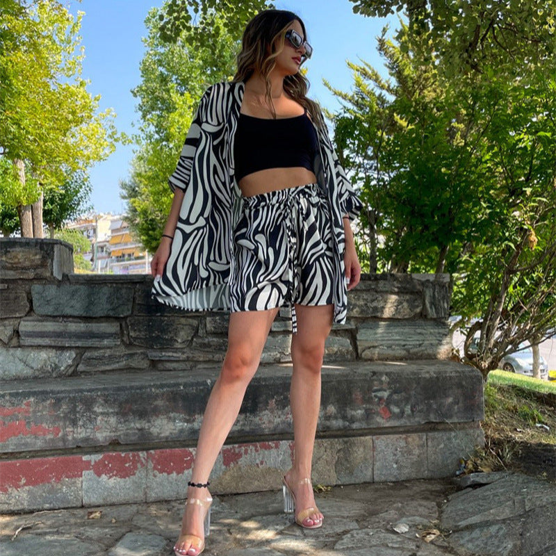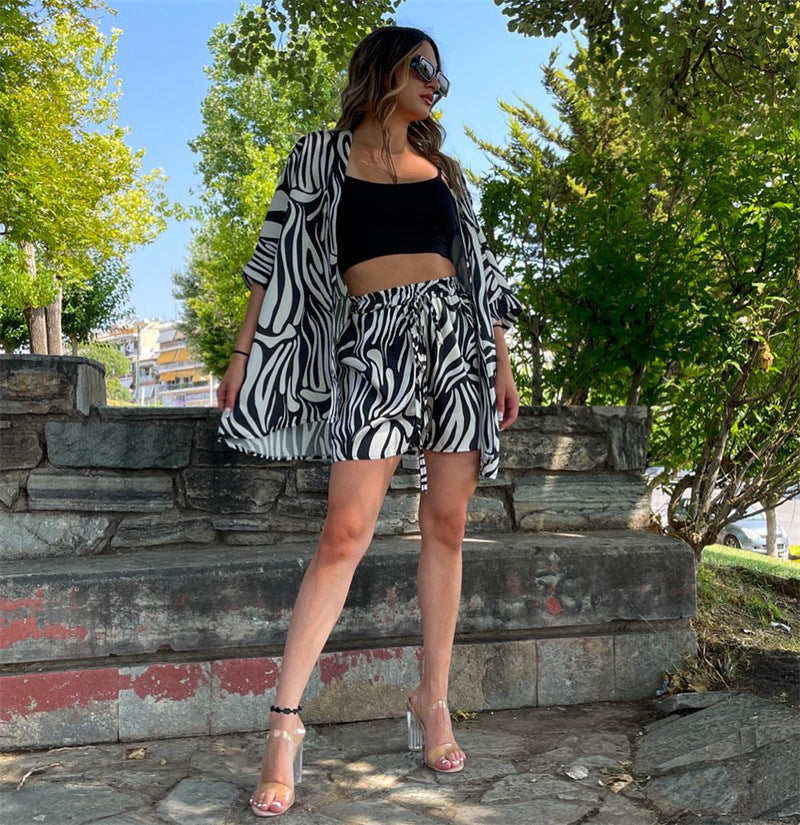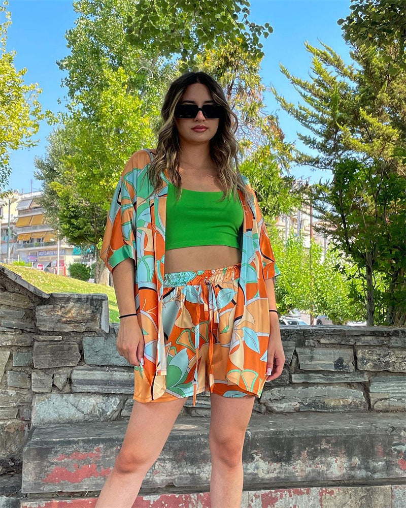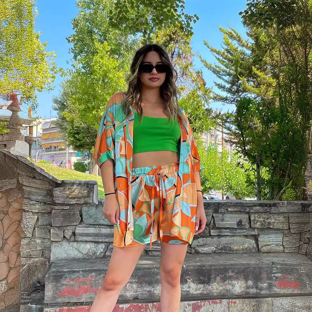 European And American Casual Fashion Printing T-shirt Shorts Set