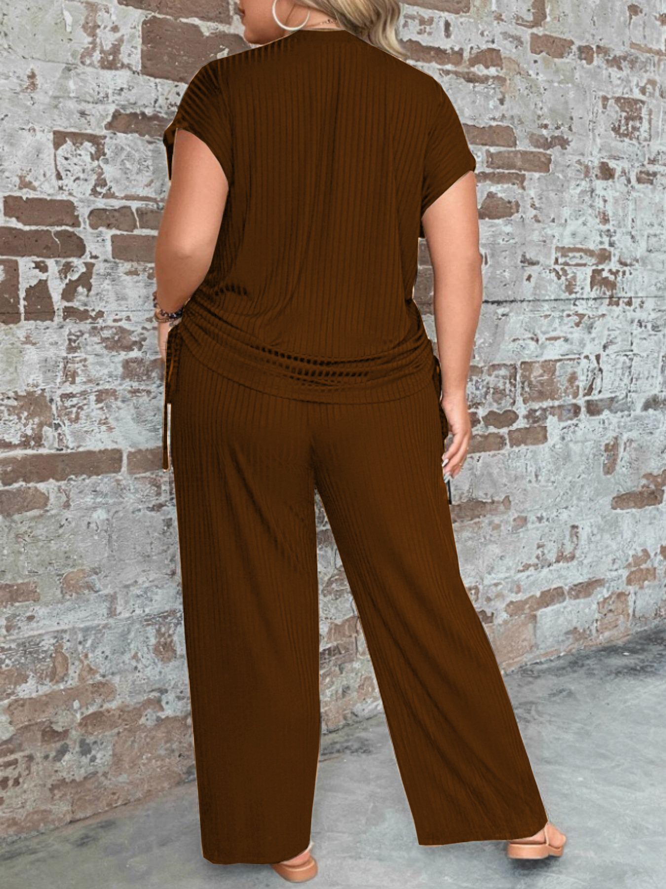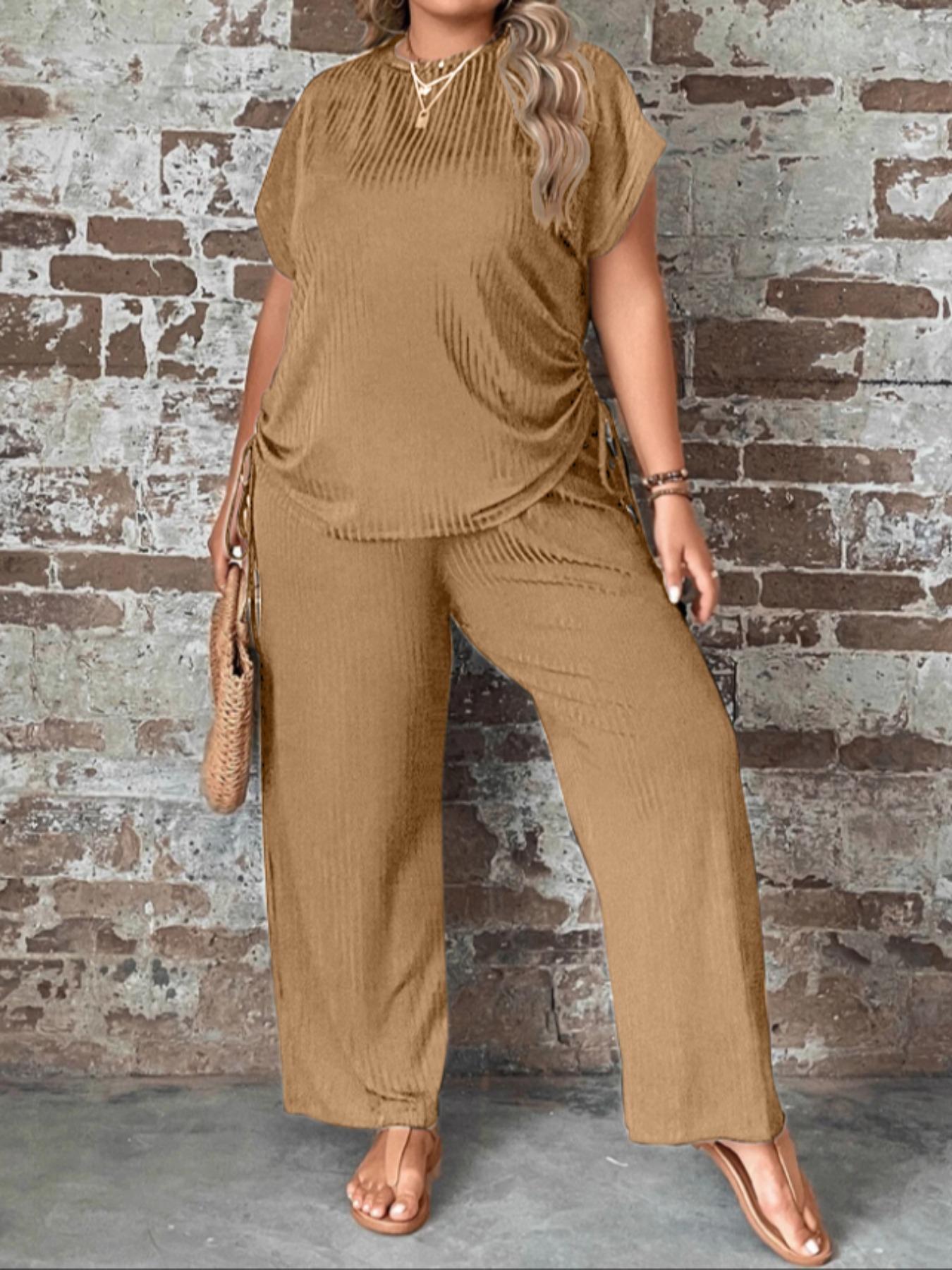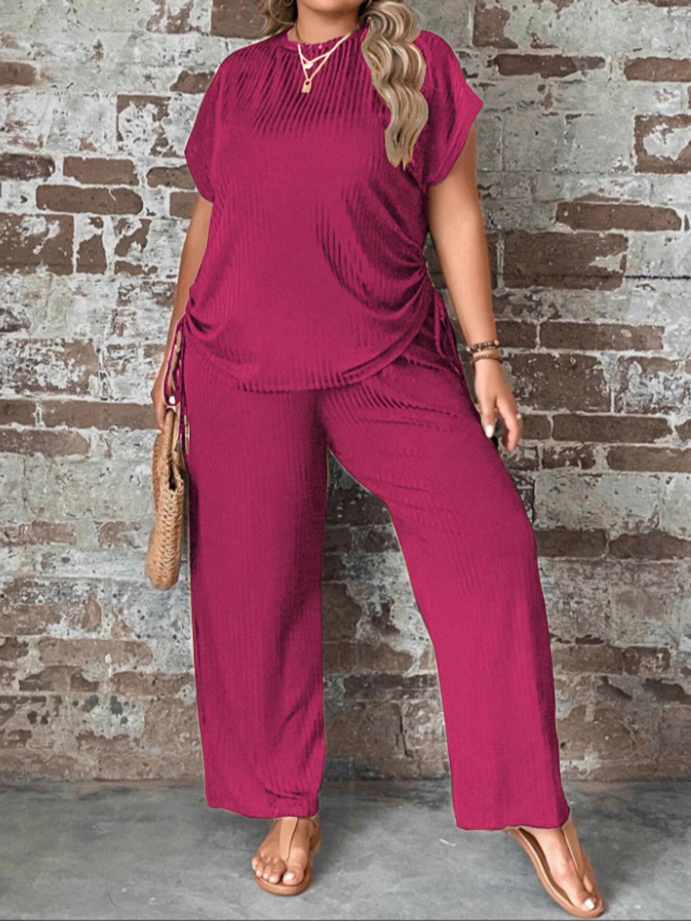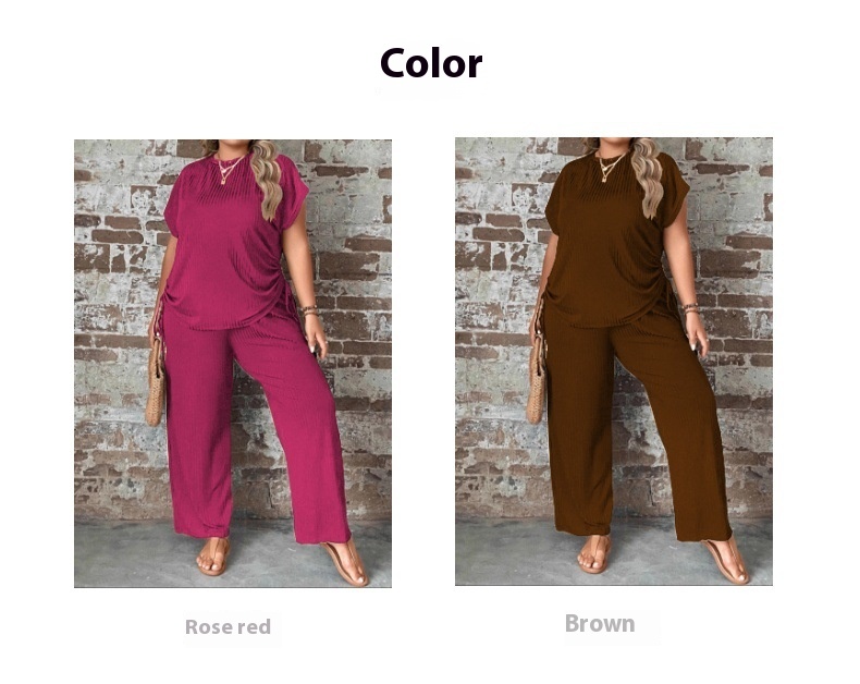 European And American Women's Casual Fashion Round Neck Multi-color Two-piece Suit Loose