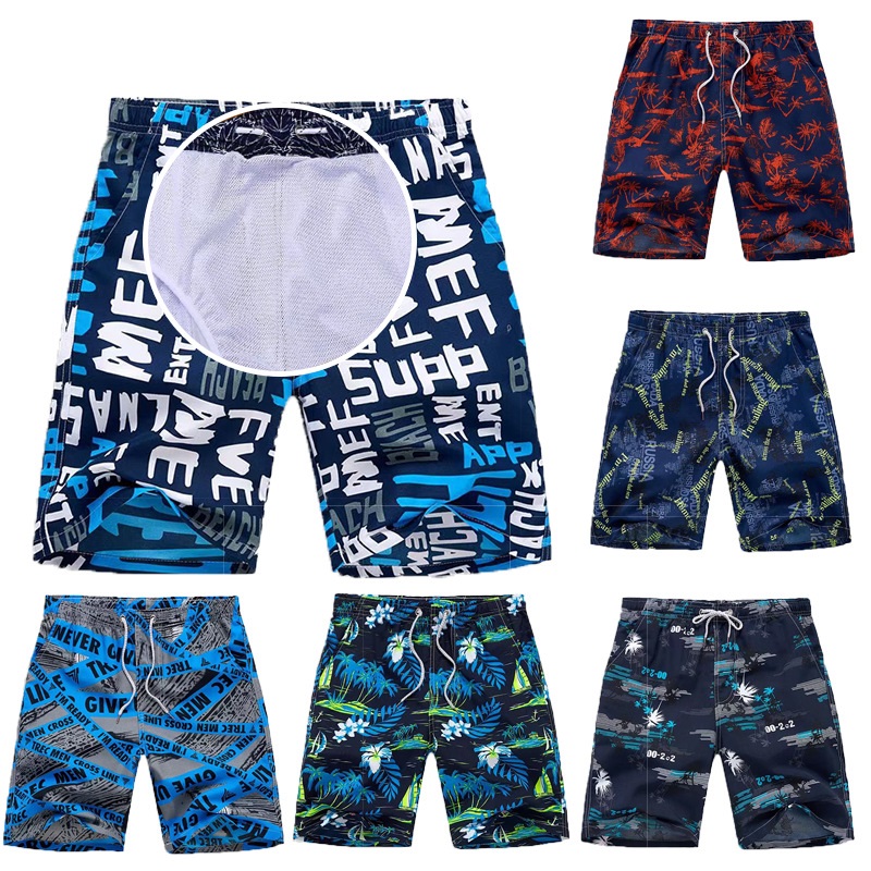 European Size Beach Pants With Inner Net Summer Men's Casual Loose Floral Pants Quick-drying