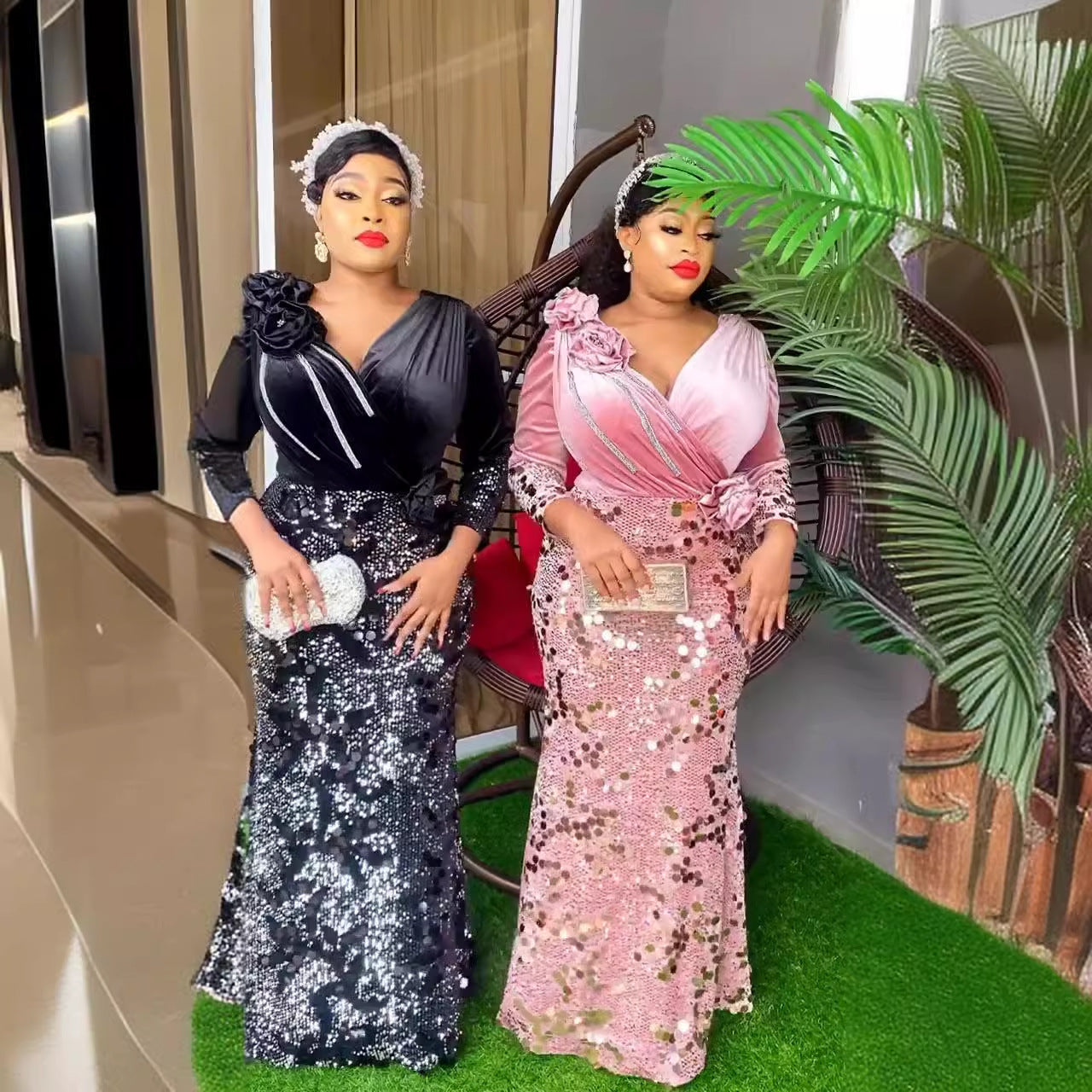 Fashion Slim-fit Velvet Sequined Evening Dress