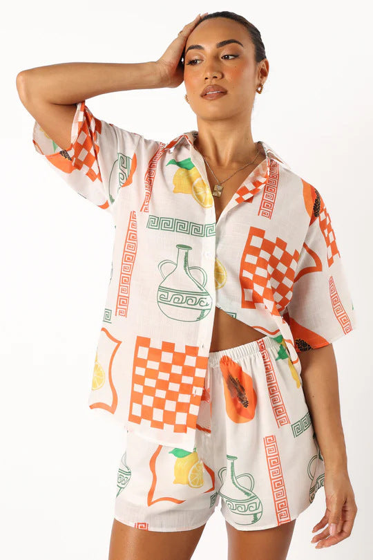 Fashion Women's Printed Loose Shirt Shorts Suit