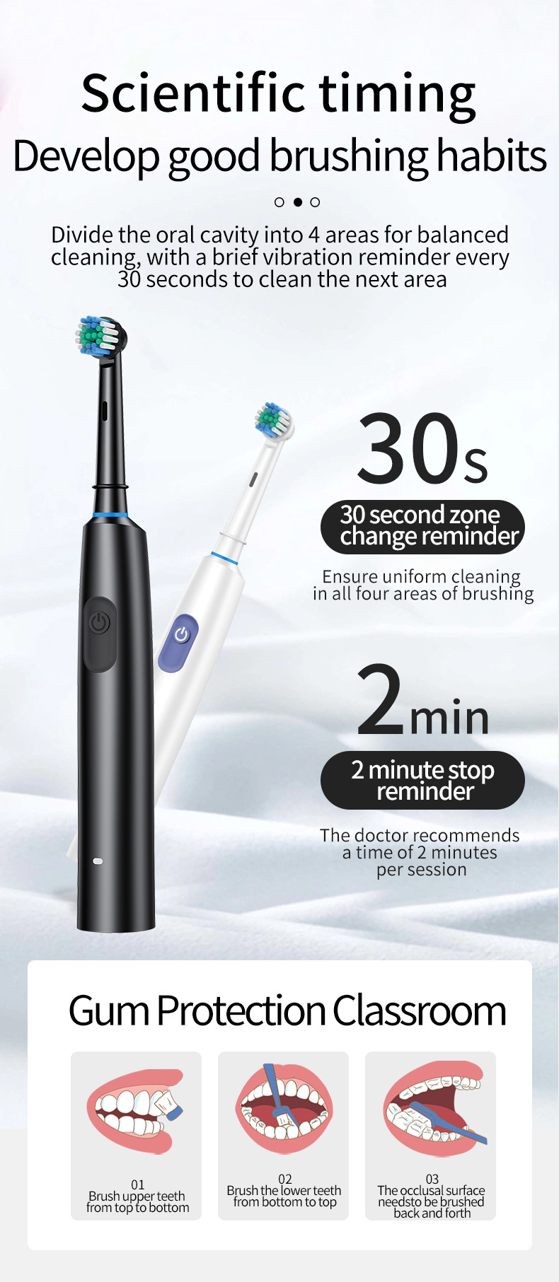 Household USB Charging Rotating Round Head Electric Toothbrush