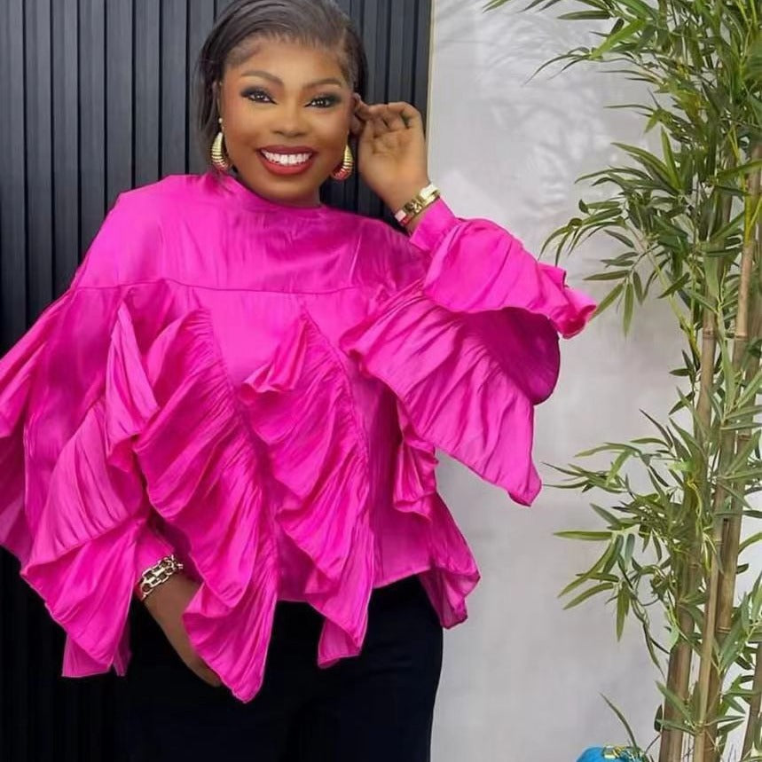 Irregular Ruffled Long-sleeved Chiffon Shirt