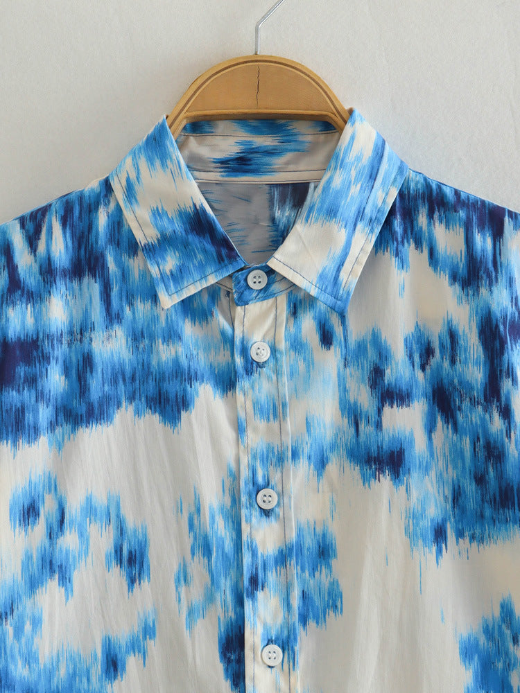 Lapel Loose Printed Poplin Shirt Printed High Waist Skirt