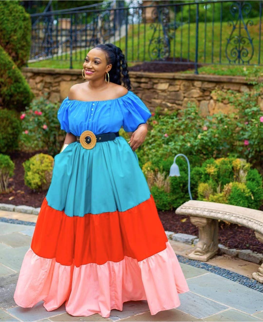 Long One-Shoulder Princess Sleeve Stitching Loose Dress