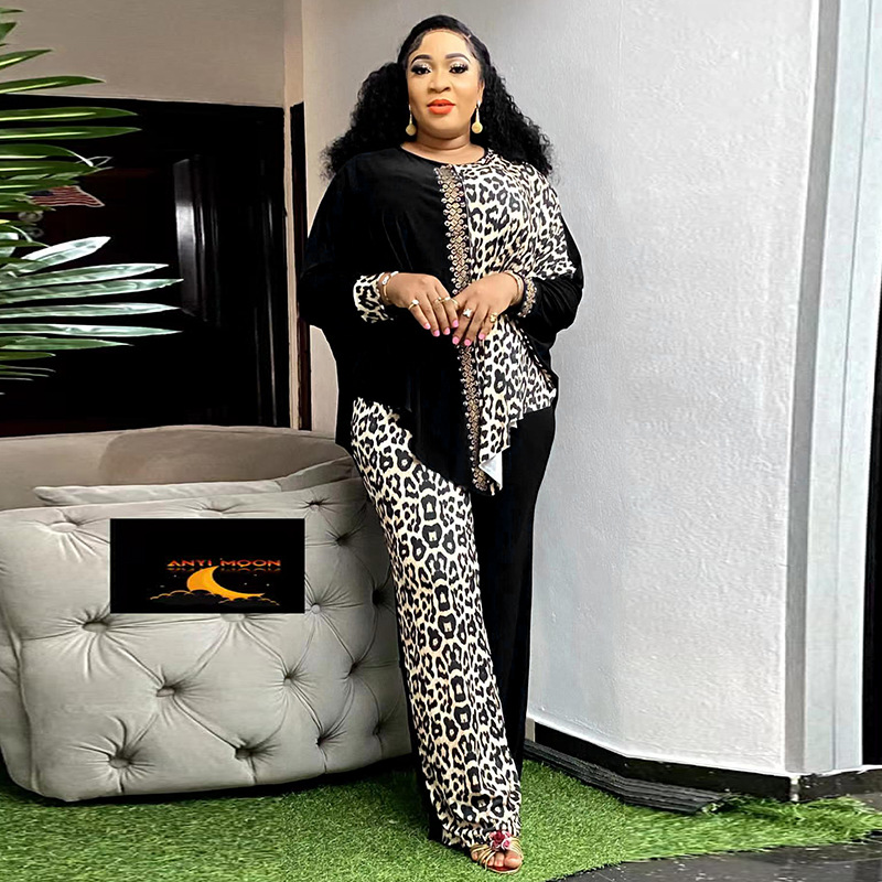 Loose Leopard Print Color Matching Rhinestone Top Trousers Suit