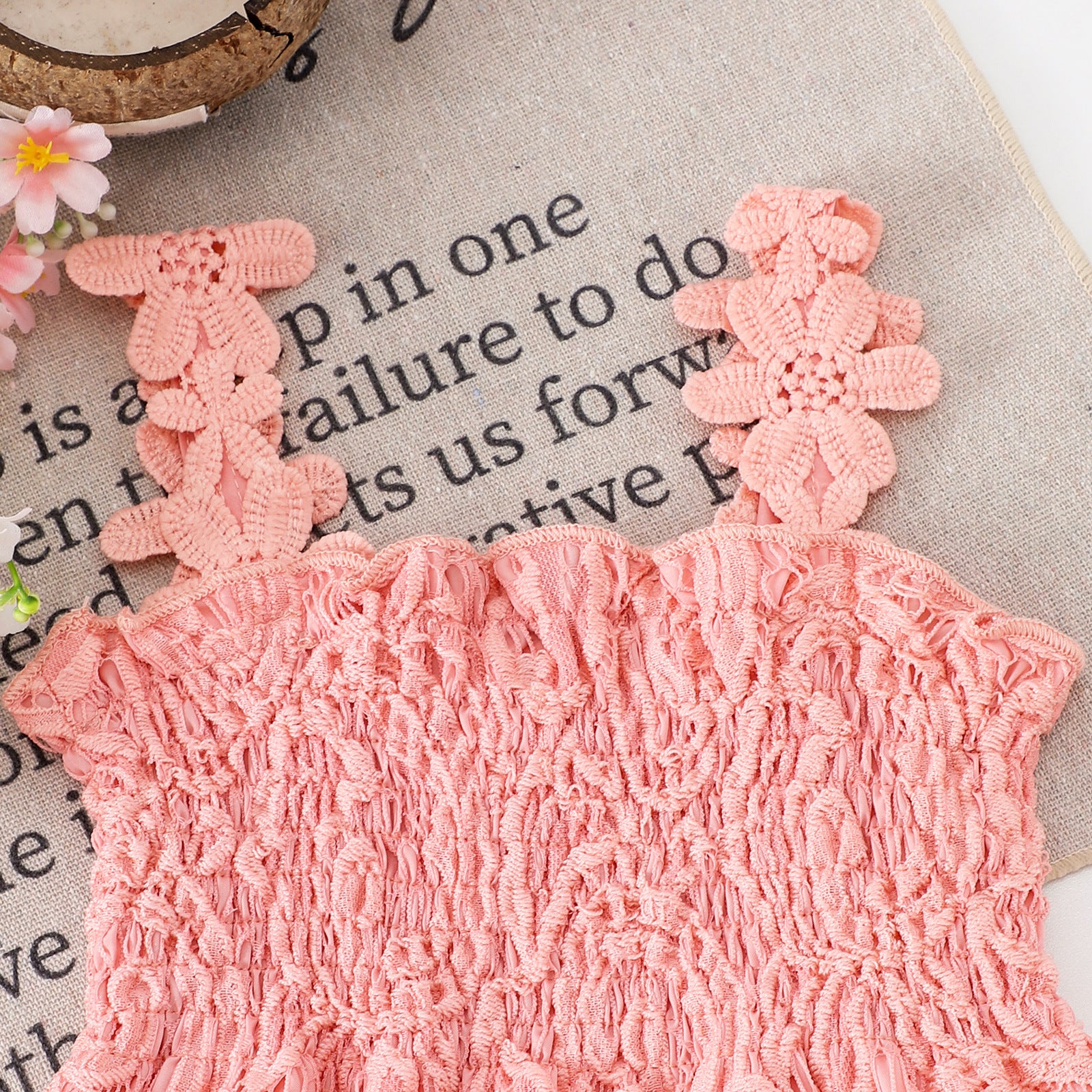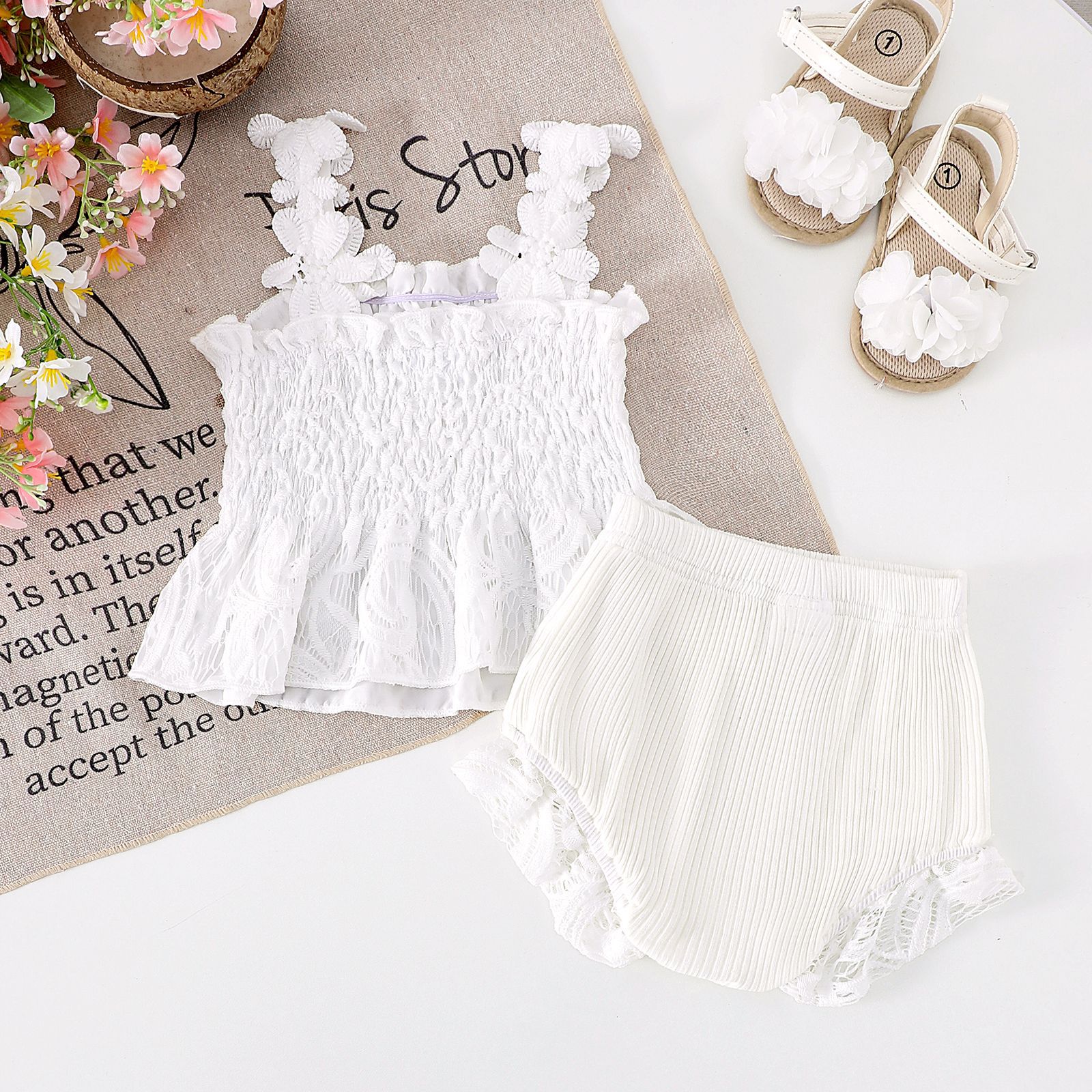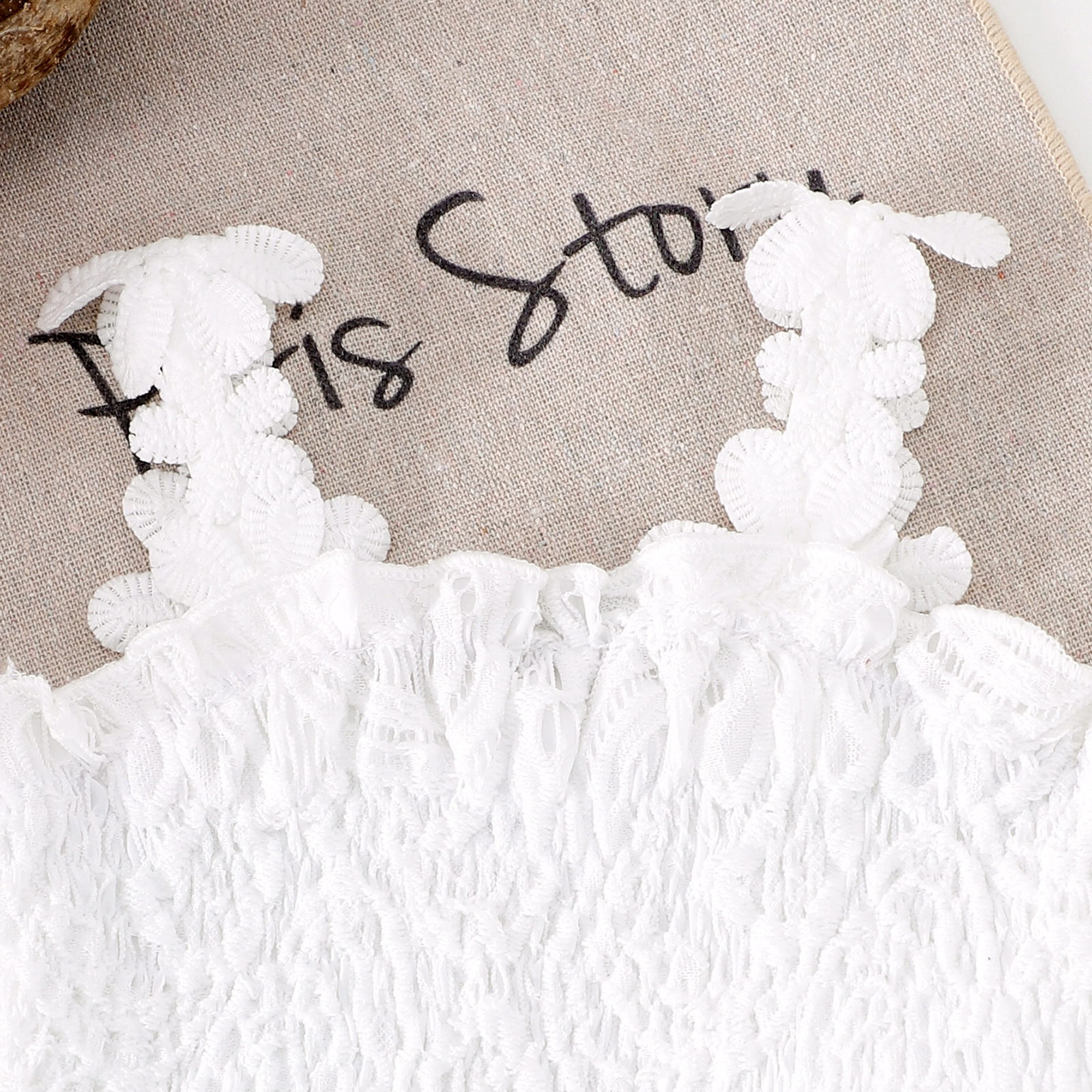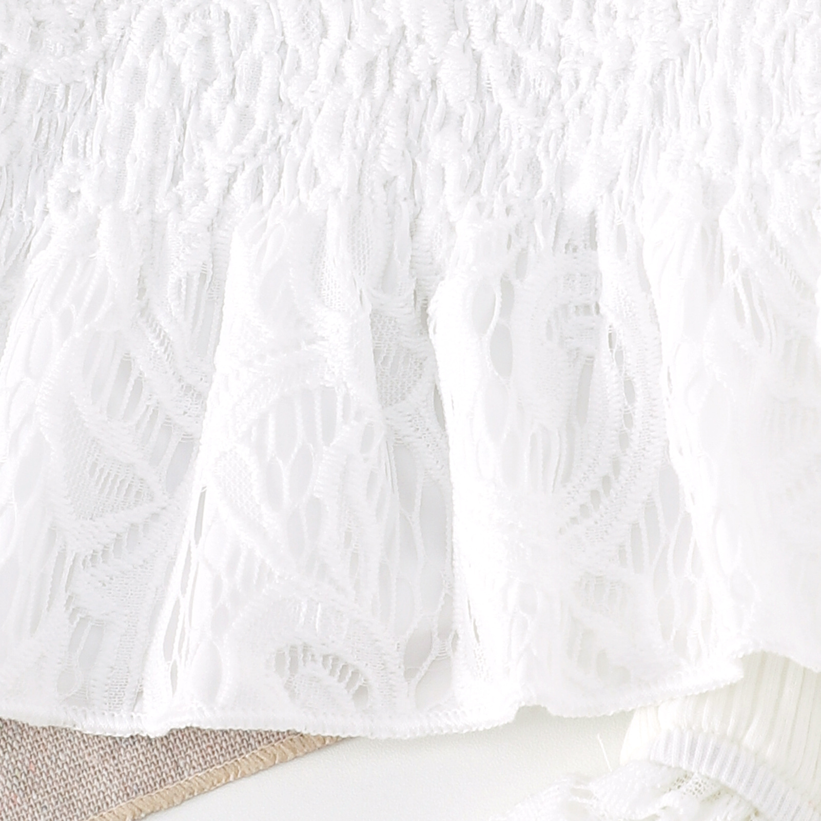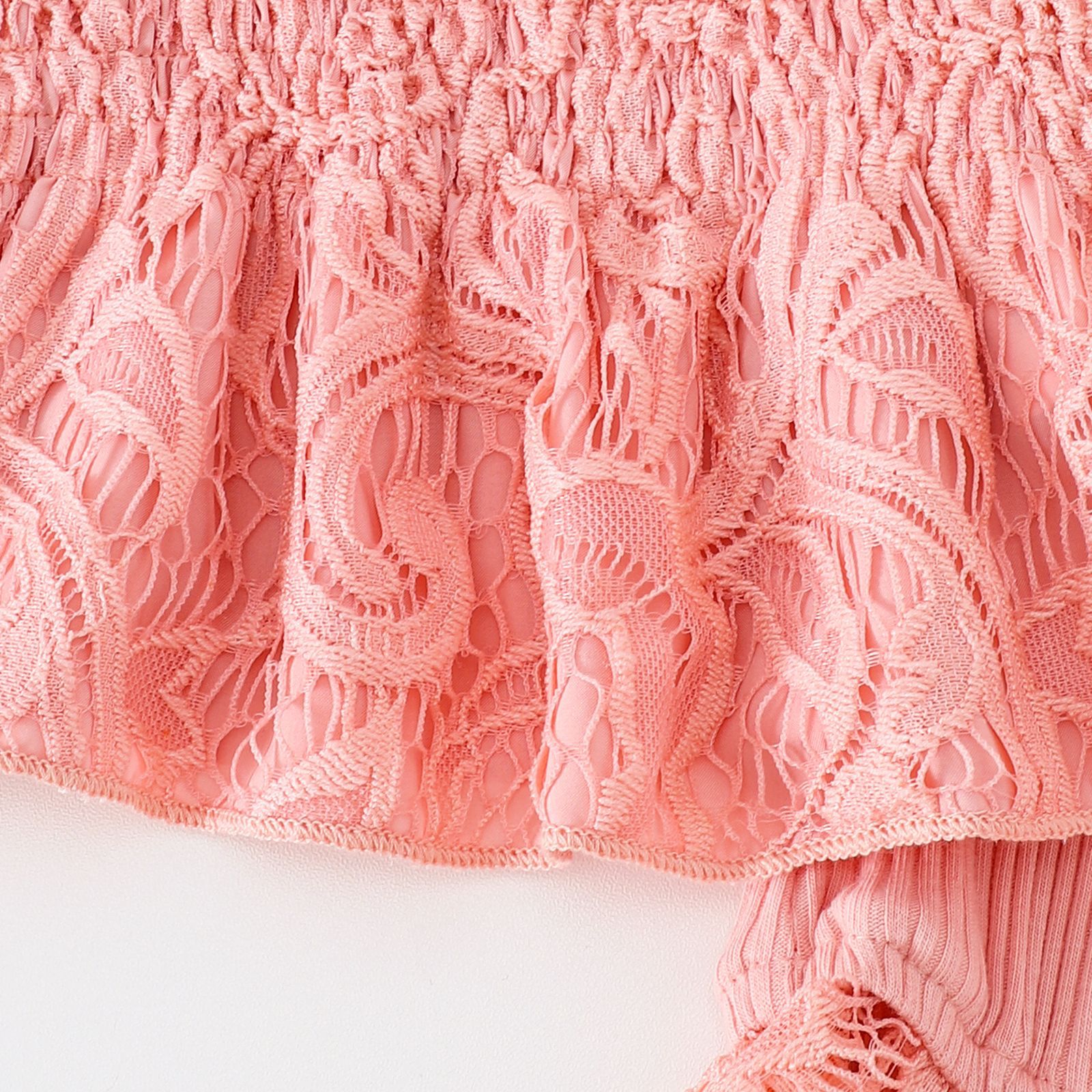 Mesh Smocking Sling Top Harem Pants Lace Two-piece Set