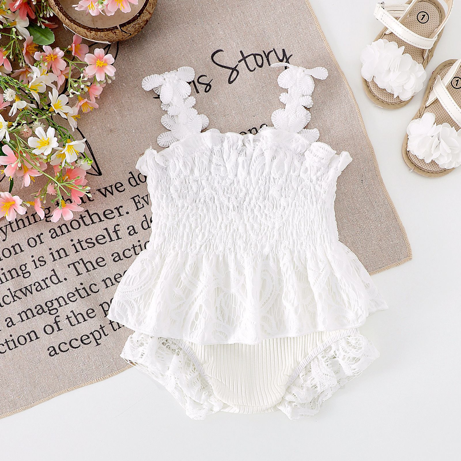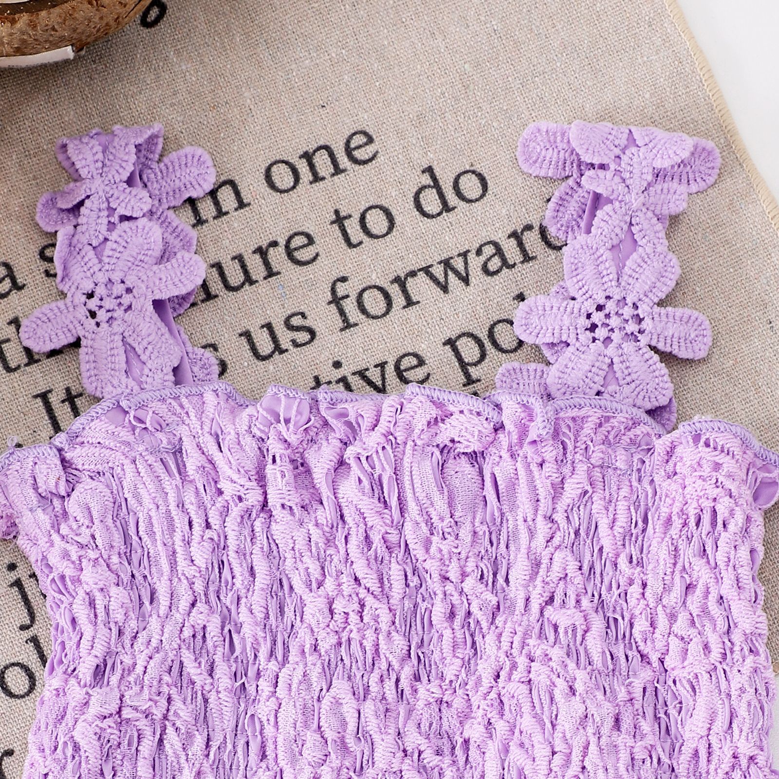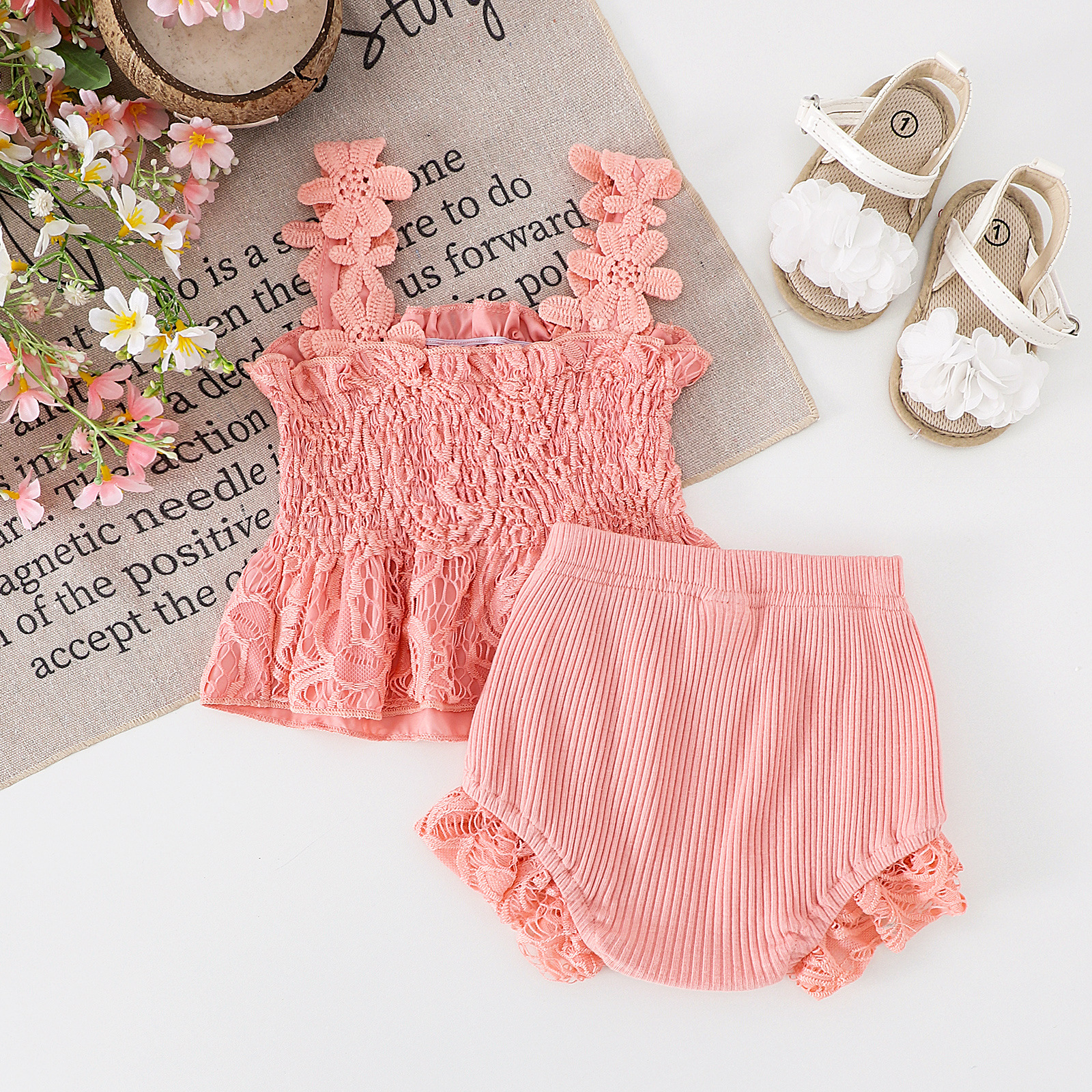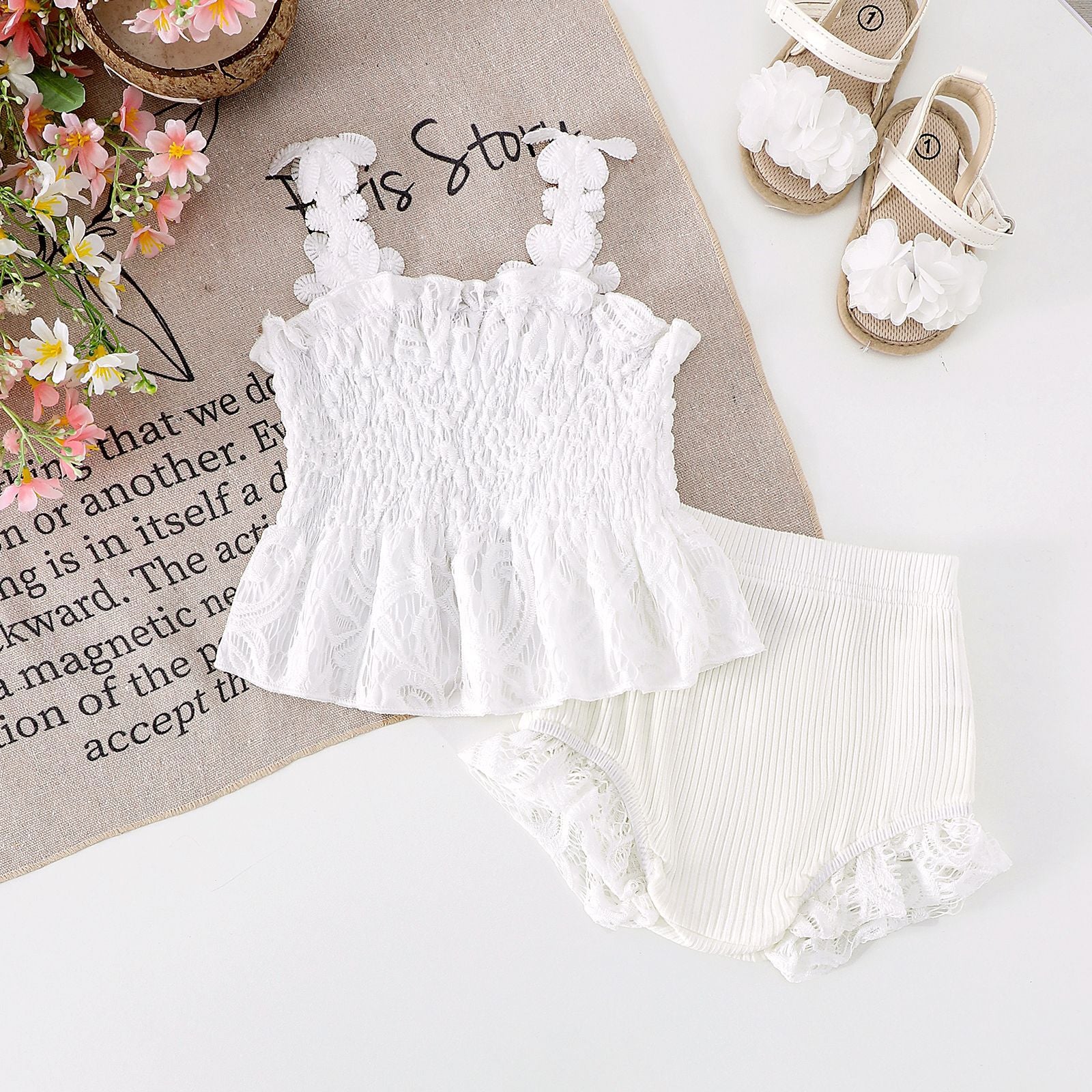 Mesh Smocking Sling Top Harem Pants Lace Two-piece Set