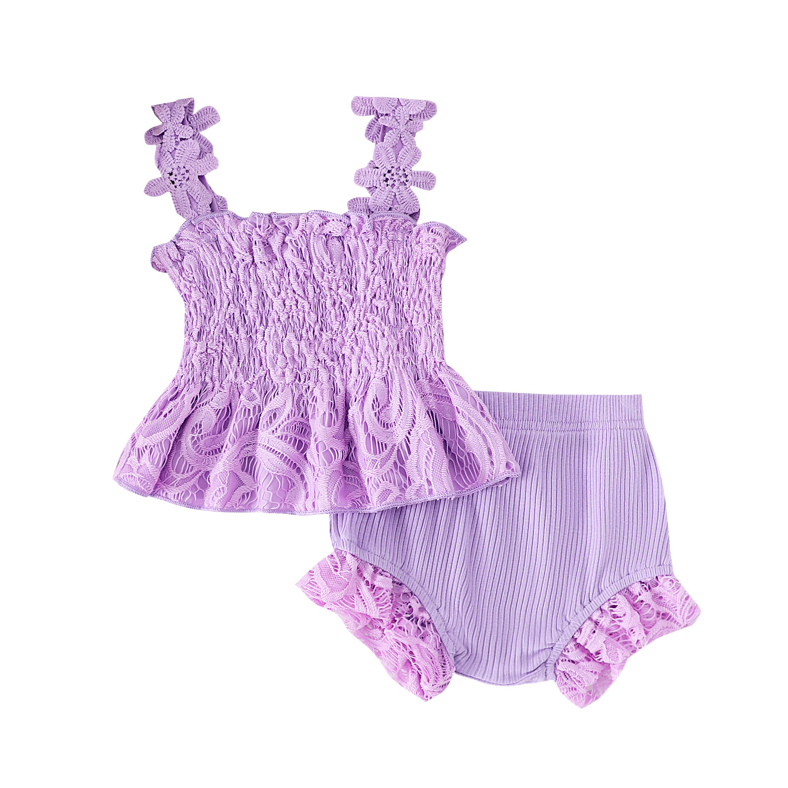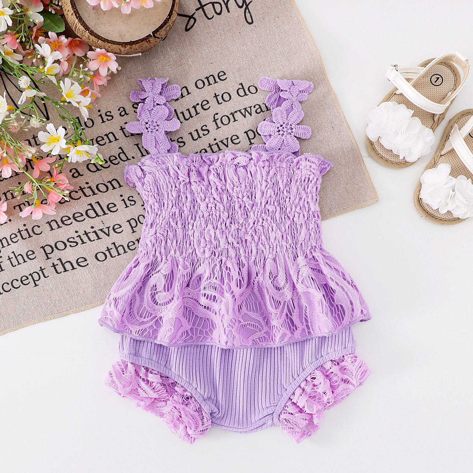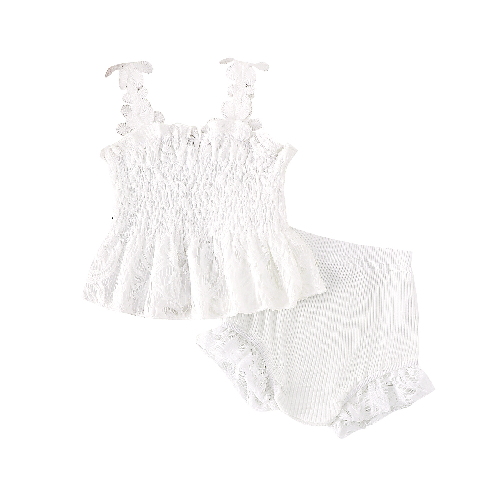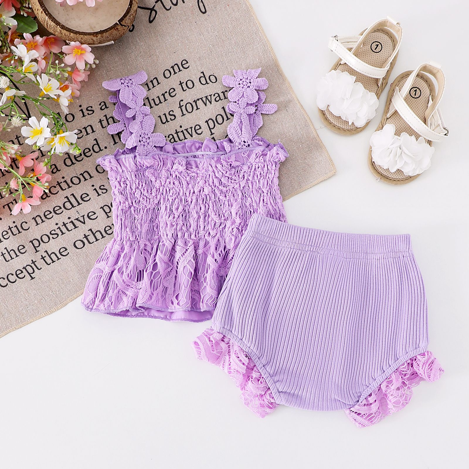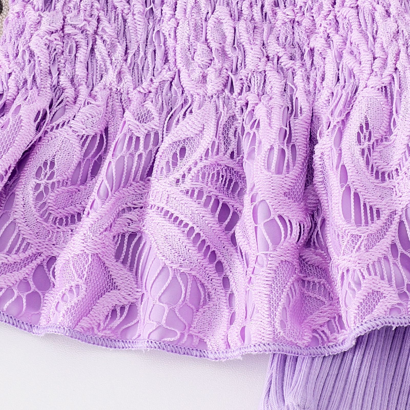 Mesh Smocking Sling Top Harem Pants Lace Two-piece Set