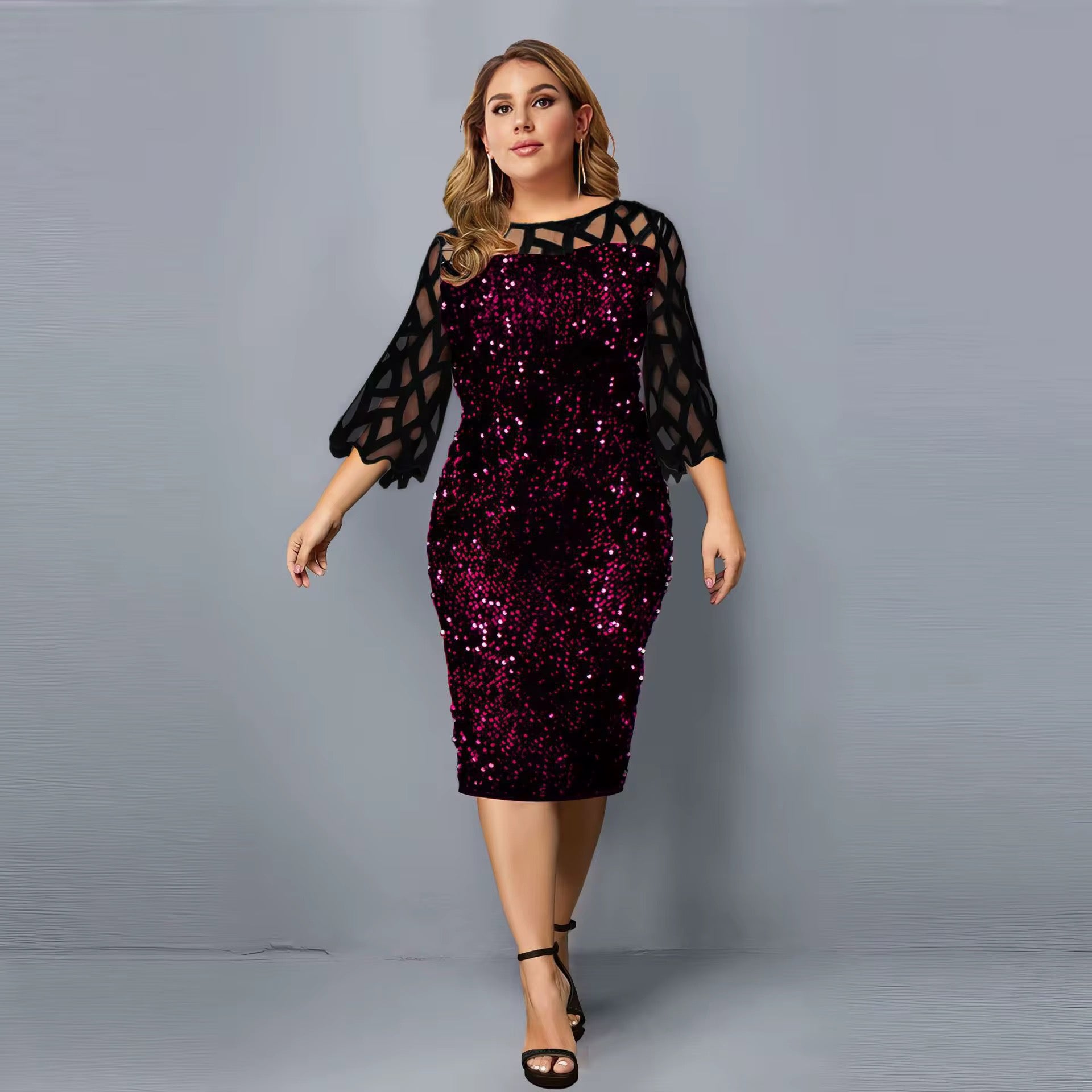 Personalized Sequins Plus Size Women's Short Sleeve Dress