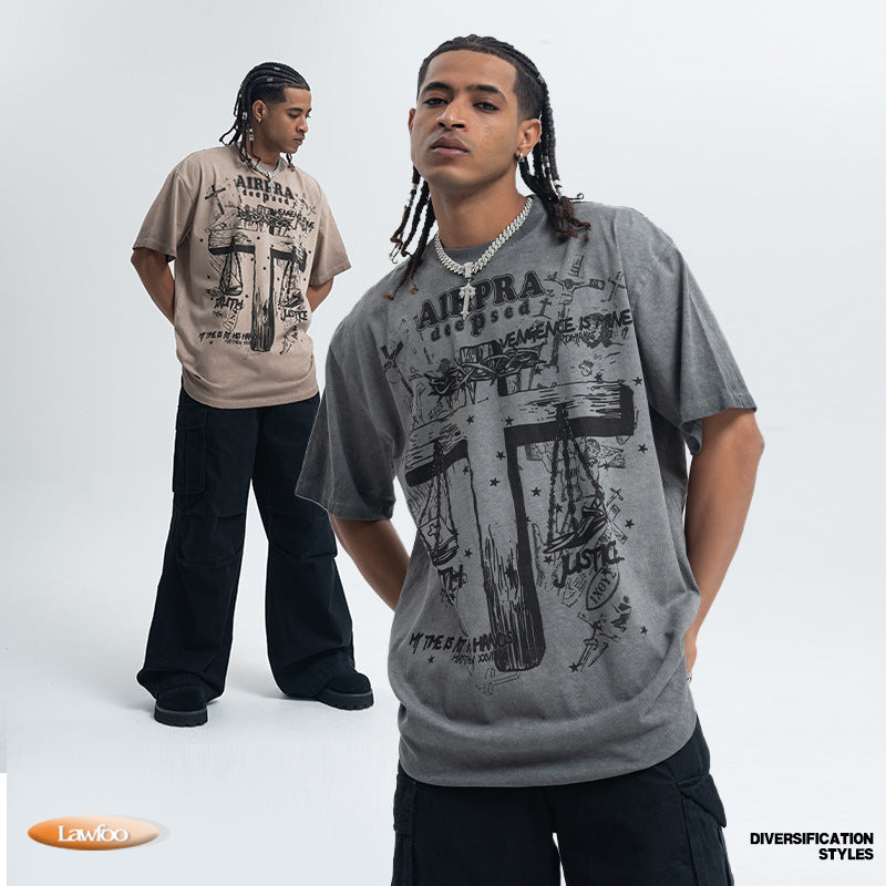 Printed Cotton Short-sleeved T-shirt Men's And Women's Bottoming Shirt Autumn And Winter
