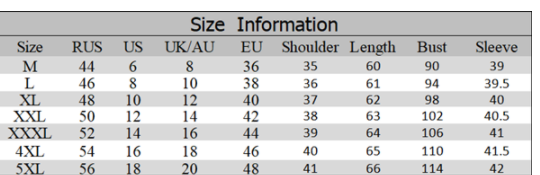 Size: M, L, XL, XXL, XXXL, XXXXL, 5XL