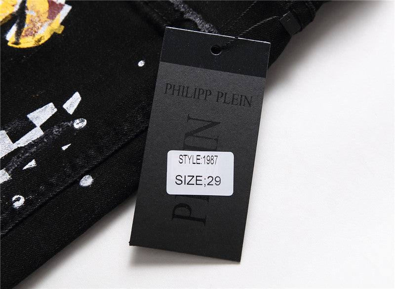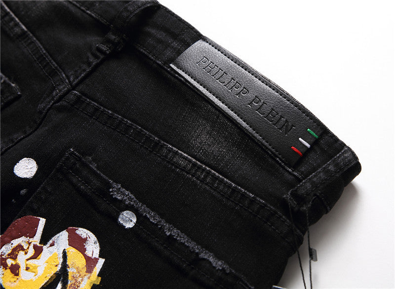 Slim Nightclub Trendy Personality Pattern Denim Trousers