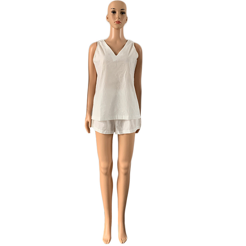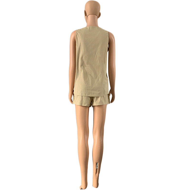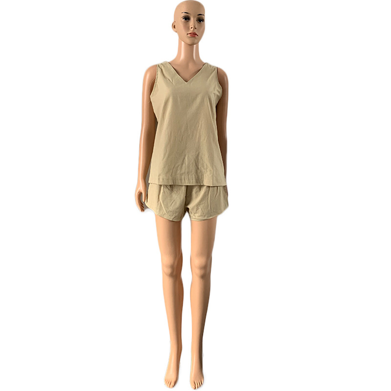 Solid Color Simple Casual Elastic Waist Shorts Two-piece Set