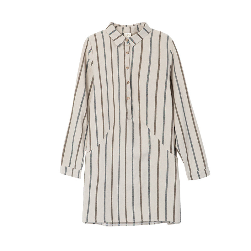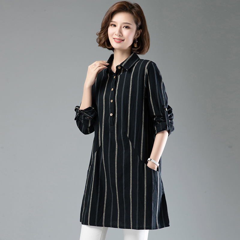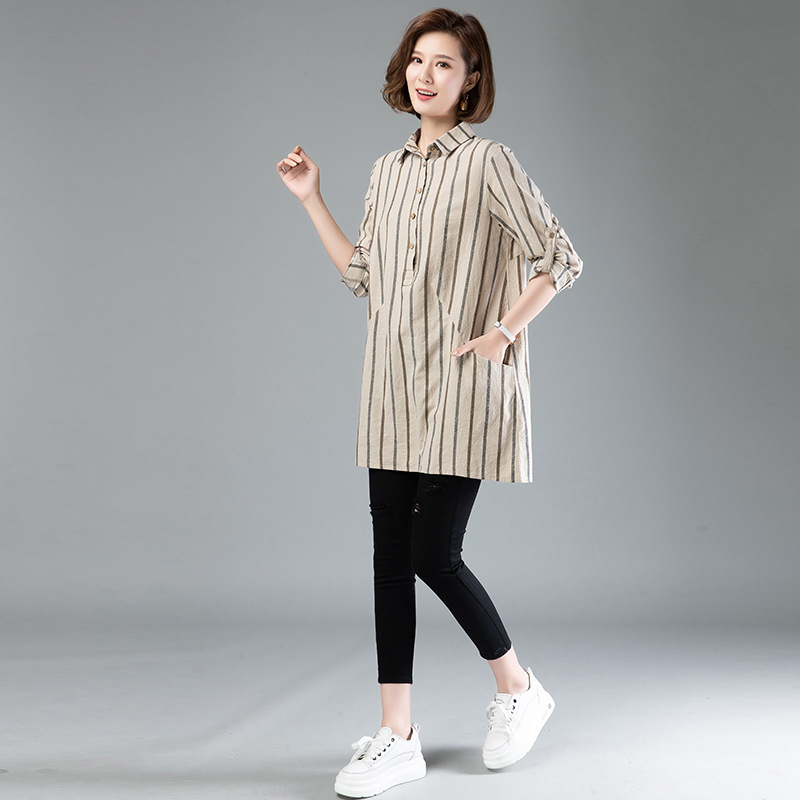 Striped Lapel Mid-Length Long-Sleeved Shirt Women