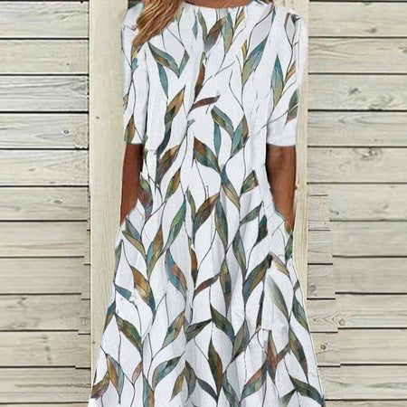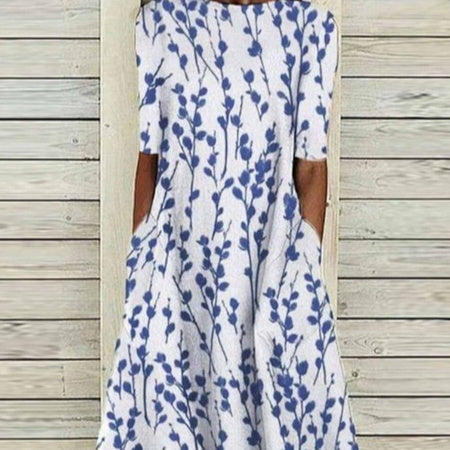 Summer New Mid-waist Women's Round Neck 3D Printing Dress