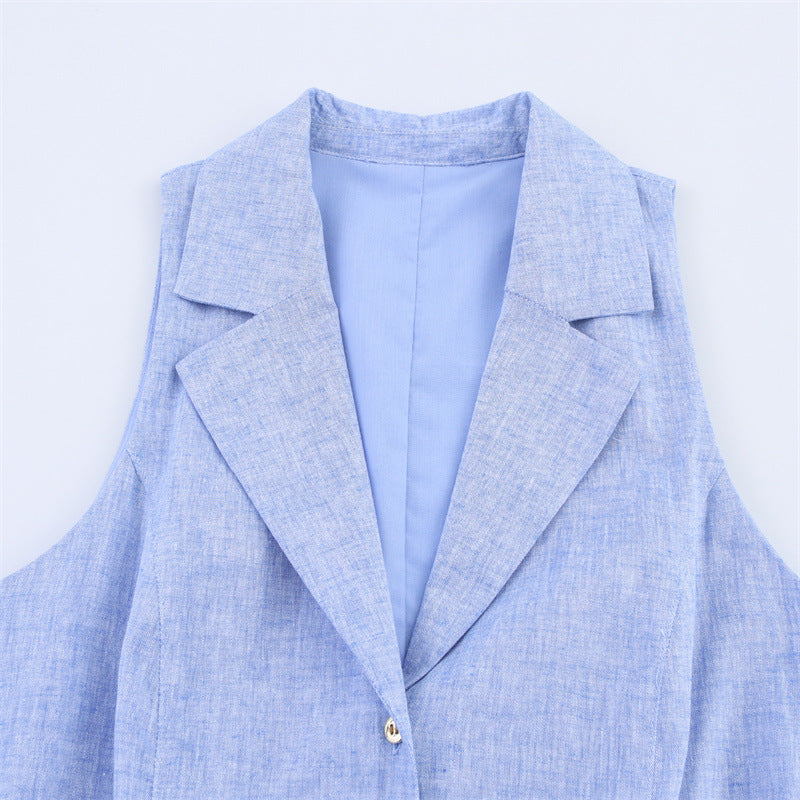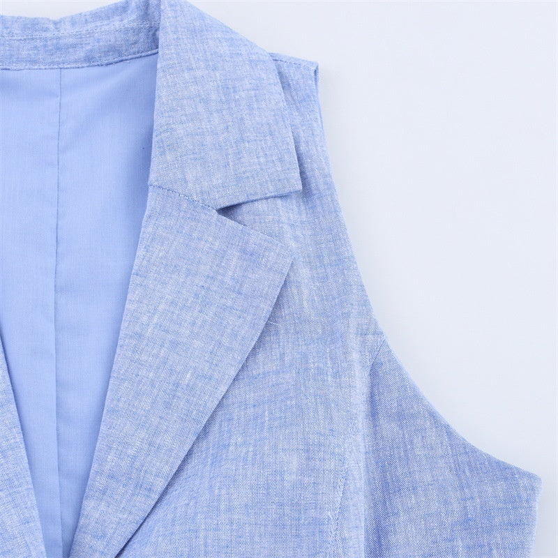 Summer With Belt Linen Blend Midi Skirt Sleeveless Dress