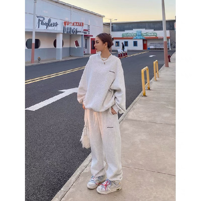 Women's Fashion Loose Casual Gray Sports Sweater Suit