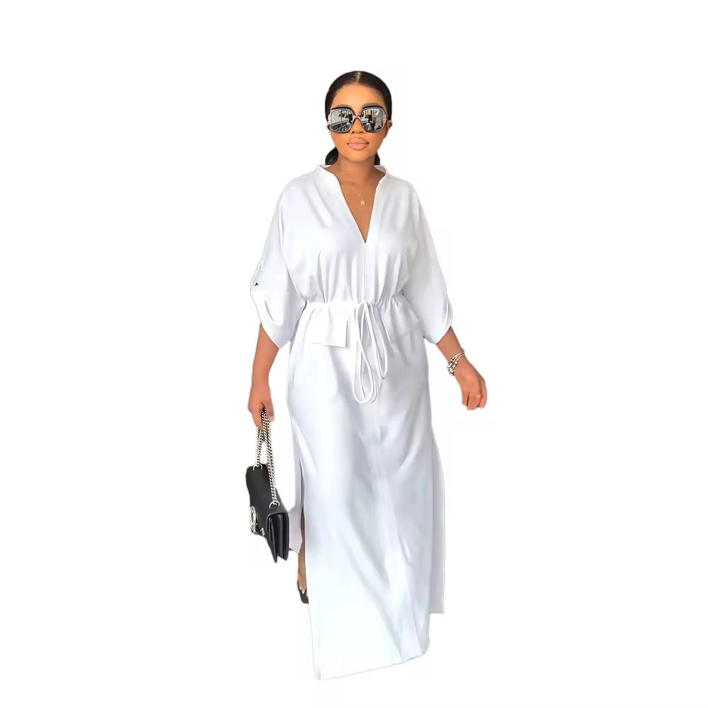 Women's Fashion Shirt Pocket Long Skirt Solid Color