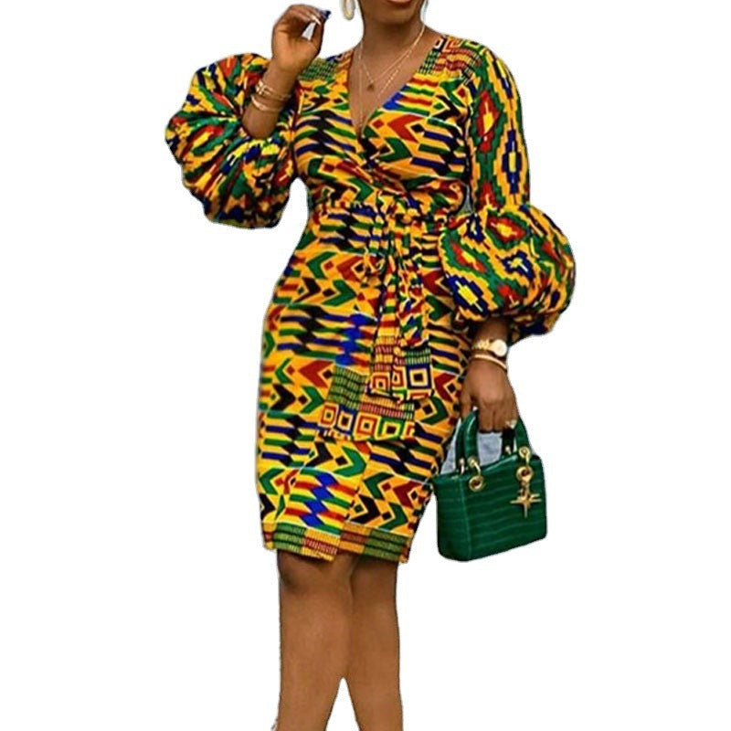 Women's Large Size Bubble Long Sleeve Belted Dress