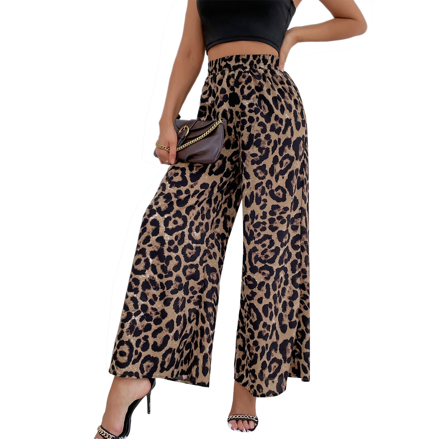 Women's Leopard Print Casual Elastic Waist Loose-fitting Wide-leg Trousers