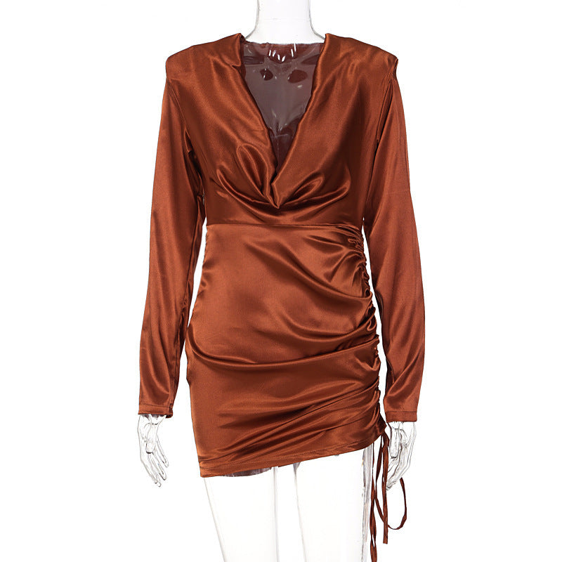 Women's New V-neck Long-sleeved Drawstring Hip Dress